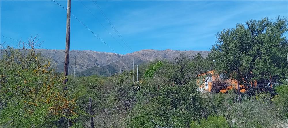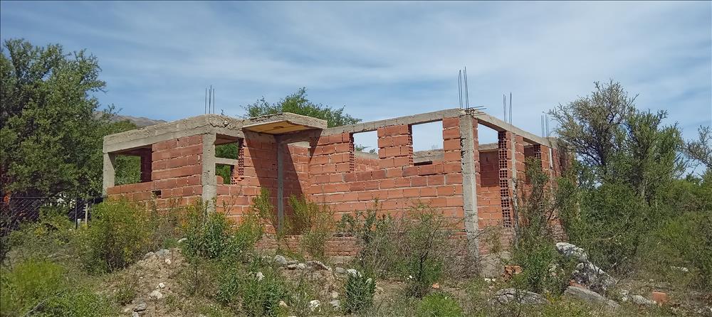 Terreno de 1.190 m2 (25x48) con mejoras en Merlo,San Luis en VENTA ubicado sobre calle El Poleo, B° Cerro de Oro, a unos 200 metros hacia el Este de la plaza y Colegio de Cerro de Oro. Es una zona de vecinos permanentes donde se destaca el entorno natural y las excelentes vistas a las sierras y valle. * Mejoras: Una edificación gruesa a terminar; con bases, cimientos, paredes hasta altura del techo para una futura vivienda de 90 m2 aprox.(Cocina - comedor, living - estar, bano, 2 habitaciones, cochera) Cuenta con instalación de cañerias y sistema de cloacas. * El predio está cercado perimetralmente y posee una tranquera. *Escritura inmediata.